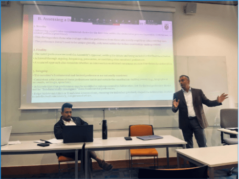 Prof Mehta then spoke about how modern liberal constitutionalism tends to focus on formal political equality and individual rights, often sidelining the representation of social power and pluralism. He questioned how this form of constitutionalism accommodates pluralism, given its emphasis on individual freedom and equality. He suggested that while liberal constitutions advocate for individual freedoms, they do not necessarily represent or accommodate pluralism in a comprehensive way. Instead, pluralism may emerge from the exercise of individual freedoms rather than being actively represented by the constitution.