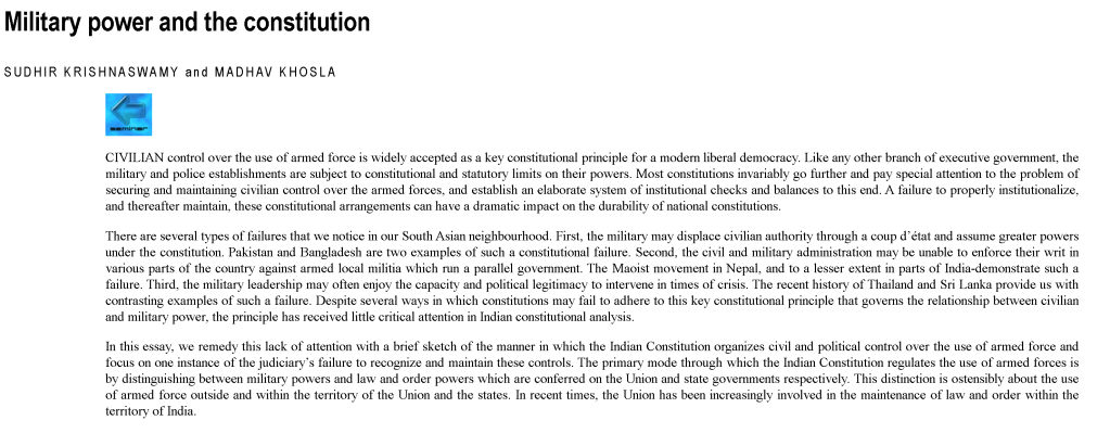 Krishnaswamy, Sudhir. 2010. “Military Power and the Constitution.” Seminar (611).