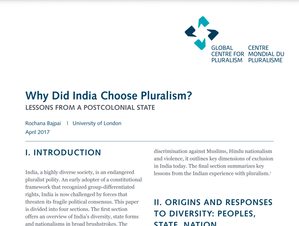 Bajpai, Rochana. 2017b. “Why did India choose pluralism? Lessons from a post-colonial state.” (Accounting for Change in Diverse Societies).